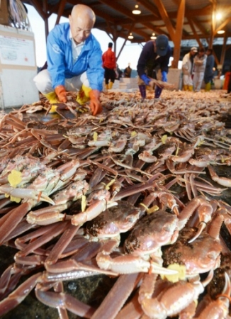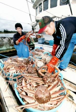 去年歸港漁船捕撈的越前蟹=2011年11...