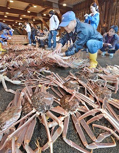 接連不斷地運到拍賣場的越前蟹= 6日下午...