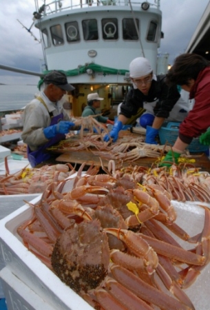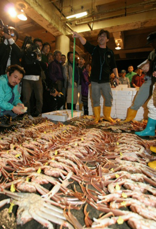 解禁初日、続々と競りにかけられるズワイガ...