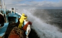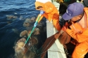 船上に引き上げられた越前がにや魚