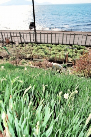 水仙の収穫が始まった越前海岸沿いの栽培地...