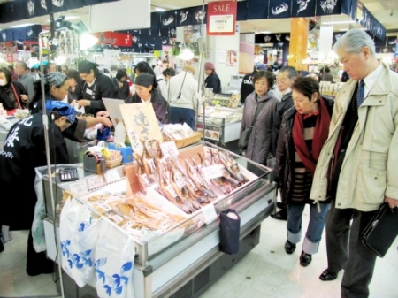 福井県の味覚を買い求める客でにぎわう「越...