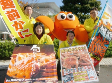 「越前かにまつり」の来場を呼び掛けるキャ...