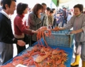 新鮮な越前がにを求める買い物客でにぎわう...