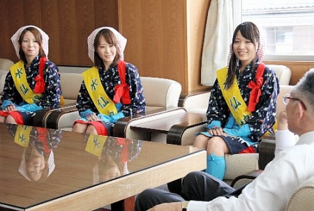 関町長を訪ね、宣伝隊として活躍を誓う水仙...