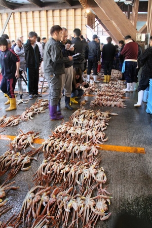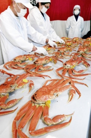 新鮮な越前がにがずらり。解禁日、競りの開...